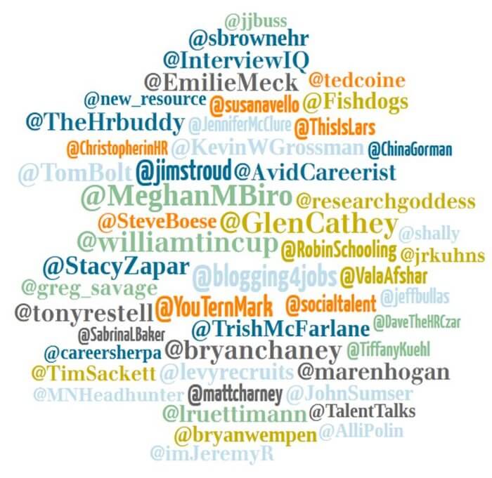 • Influencers develop a “brand” of their own. Each top influencer has a style and focus that’s unique. For instance, @JimStroud focuses on social recruiting and job search strategy, while @GlenCathey’s approach is decidedly more tech-and-data driven.