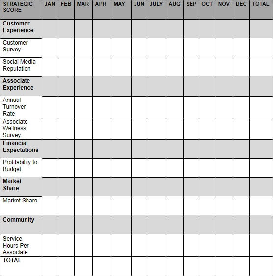 Update and review the scorecards each month. Ensure the scorecard is posted in an easy-to-access place, available both in soft and hard format.